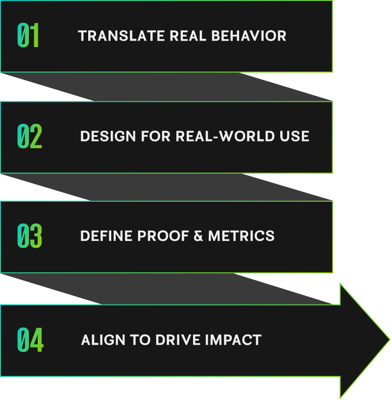 A behavior-led strategy and patient-centered priorities that translate into sustained adoption, not just look good in a deck.
